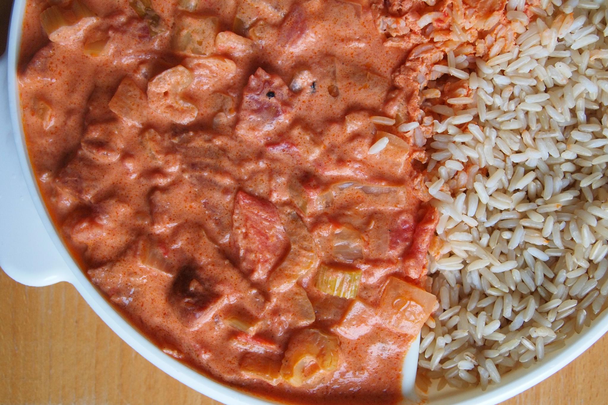 De bereiding is zeer simpel. Zet water voor de rijst op en kook de rijst goed gaar. Snij cervelaat in stukjes en bak tot het vet eruit is. Voeg gesneden ui toe en ‘frituur’ tot de ui goed gaar is. Voeg de groenten, gesneden, toe en bak nog maar even wat meer. Vervolgens de tomaten en creme fraiche erbij, op smaak brengen met wat zout en natuurlijk peper. Even goed doorgaren en apart met de rijst serveren.