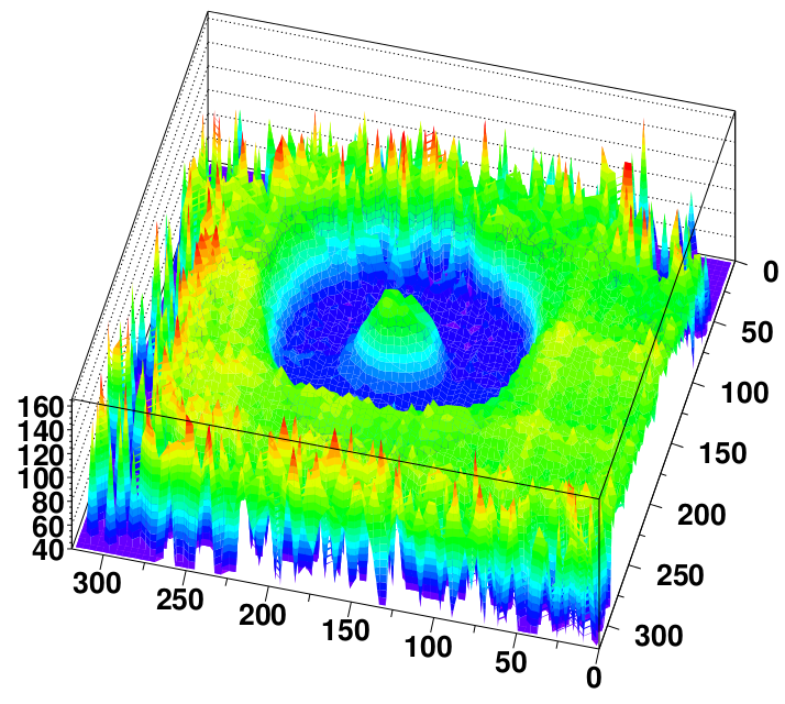 Again the detection plane farthest removed from the phantom shows very little detail. The four planes coupled with the MLP track reconstruction method did however recover some of the detail present in phantom “A”, indicating the MLP method is able to mitigate some multiple scattering. With phantom “B” it becomes clear that the setup is not sensitive to small features yet: a spatial resolution of 1.1mm is calculated. The energy resolution is put at 4%, and among the limiting factors “the number of proton histories” is mentioned. Not enough tracks have been recorded, so the statistics couldn’t be better than this.